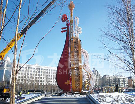小提琴加琵琶共同融合的雕塑制作,生動的體現(xiàn)出和諧之音,促進和諧發(fā)展,奏響幸福樂章。